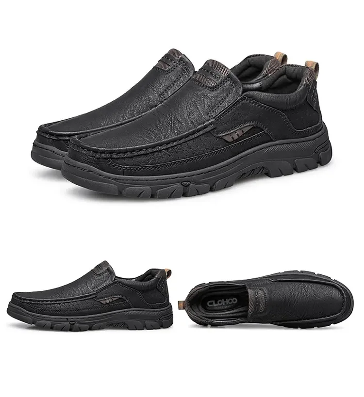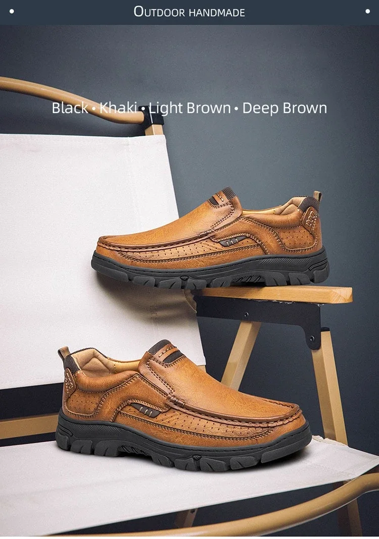 Mens Non-slip Walking Shoes Leather Lightweight Breathable Casual Loafers
